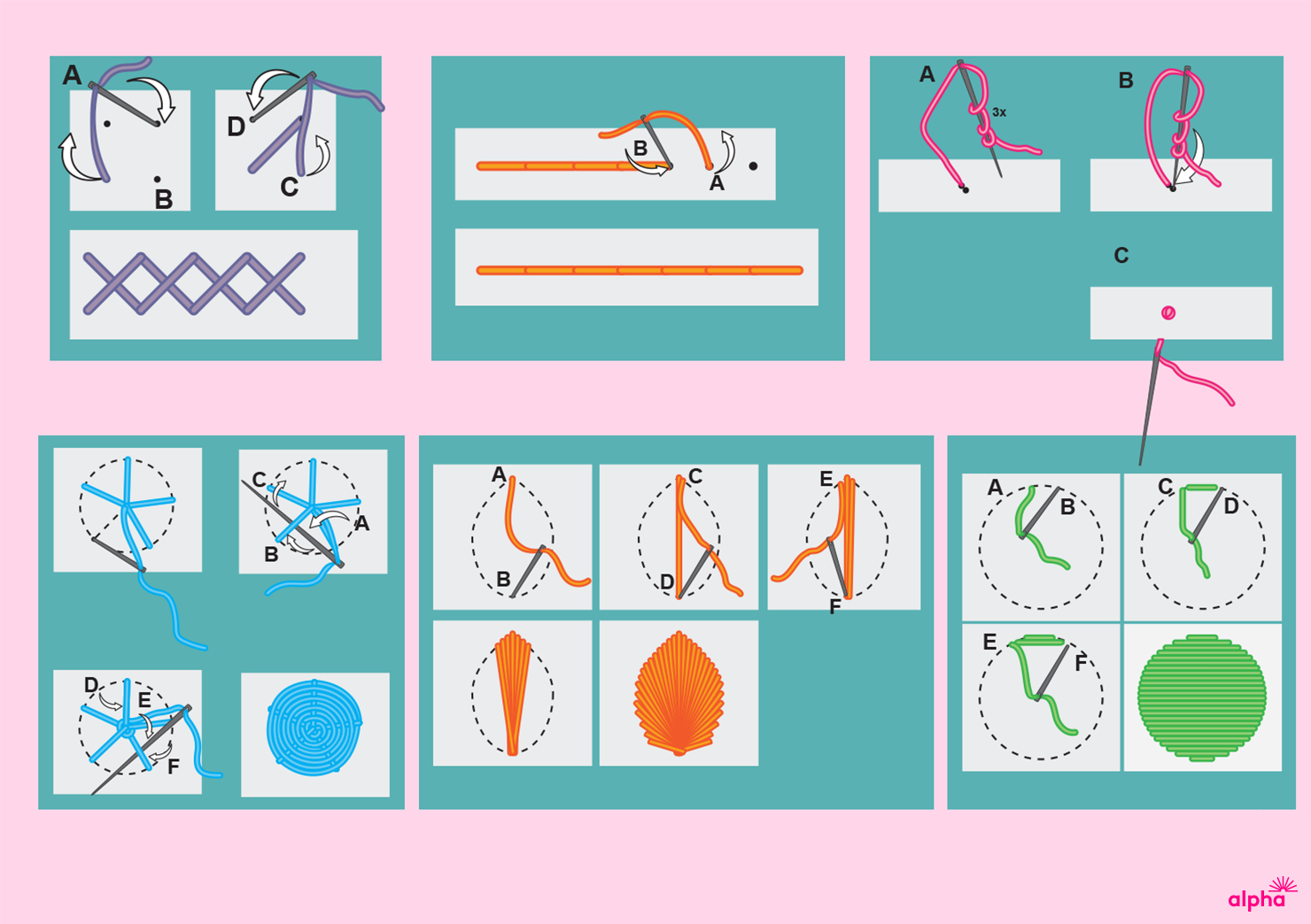 Illustreret broderi-vejledning til bogen ‘Lidt broderi har aldrig skadet’ af Rikke Mia Skovdal.