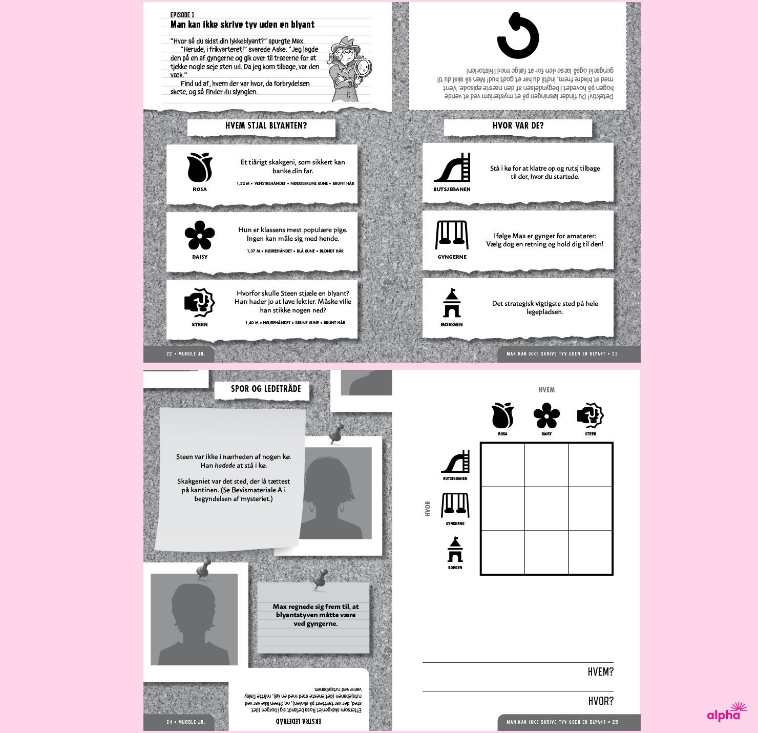 Versionering af omslag + indhold til ‘Murdle Jr’ af G. T. Karber.