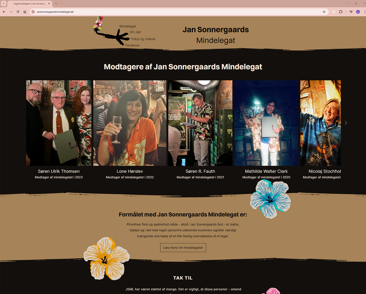 Hjemmeside til Jan Sonnergaards Mindelegat. Siden kan ses live HER.